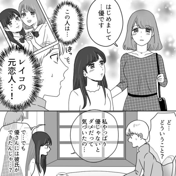 ある日友だち・レイコの恋愛相談に乗っていると「彼女に浮気されていた」と泣き始めます。