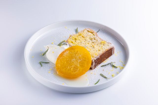 「はっさくとローズマリーのウィークエンドシトロン」は、しっとり生地のパウンドケーキの中に練り込んだローズマリーがアクセントに。トッピングのコンポートは、はっさくの風味やフレッシュな食感が存在感を放ちます。
