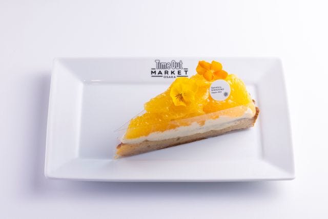 「はっさくのタルト」(1,380円)/<タイムアウトマーケット大阪>Seiichiro,NISHIZONO(南館地下1階) ※1日限定10食 蜂蜜でマリネしたはっさくを、贅沢に約1個分使用した「はっさくのタルト」は、ティータイムにぴったり。ジューシーなはっさくに、店舗自慢のアーモンドをたっぷり使ったタルト台とコクのあるディプロマットクリームを合わせ、奥行きのある味わいに仕上がっています。