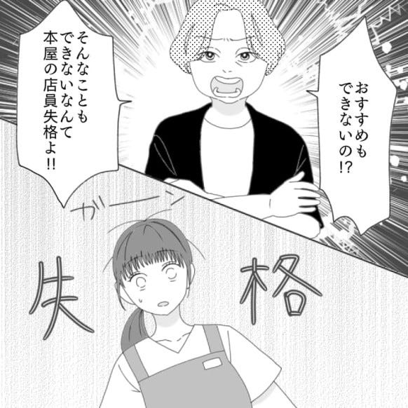 しまいには、自分の要求に応えられない主人公に対して「本屋の店員失格よ!」と言ってきました。