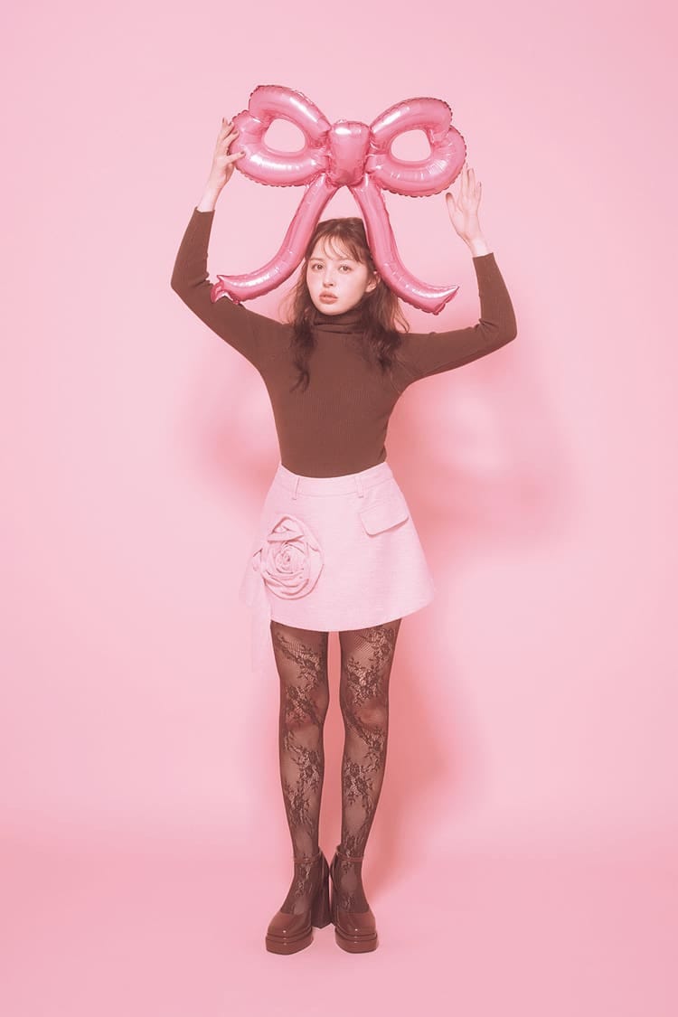デコラティブなアイテムは、シンプルにまとめるのが正解。スカートの甘さが引き立って、よりガーリーな仕上がりに♡ ピンク以外をビターな同系色ブラウンにすればしゃれ感UP。