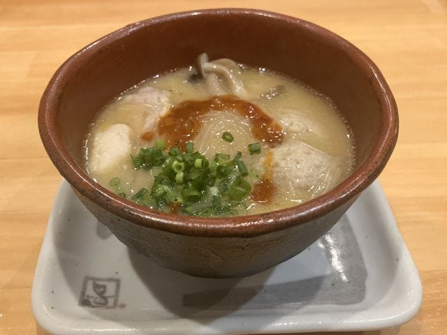 「旨辛トマトの春雨スープ」(605円)※期間限定メニュー シメの一杯におすすめの「鶏白湯らーめん」は、鶏のうまみが凝縮したスープがクリーミーな口当たりで、味玉と鶏むね肉をトッピングしています。