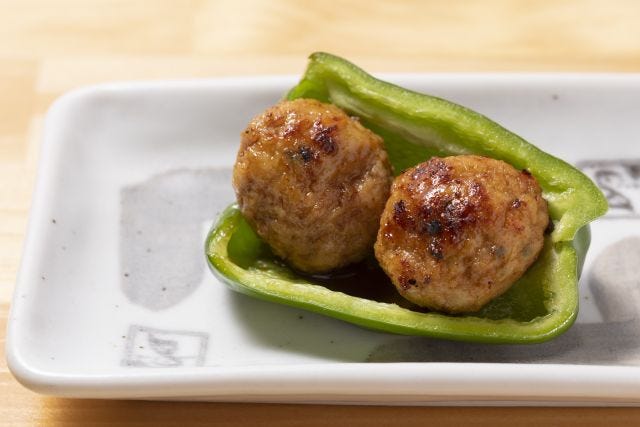 「つくねパリパリピーマン」(242円) 大吉サラダやポテサラ、ささみかつなどお酒や食事が進む一品料理も豊富にスタンバイ。