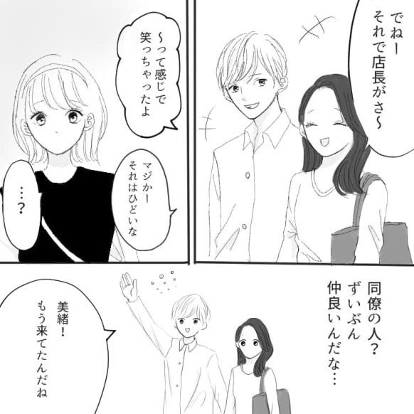 そこには彼の同僚で仲のいい女友だちがいて……。