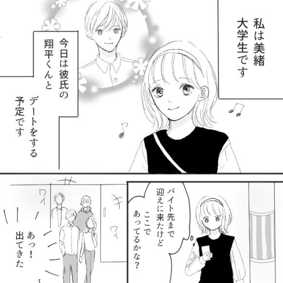 彼氏のバイト後にデートをすることになり、彼のバイト先まで迎えに行くことに。