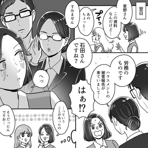 ある日主人公は、労務の人から「ハラスメントされたと被害報告が来ています」と告げられました。