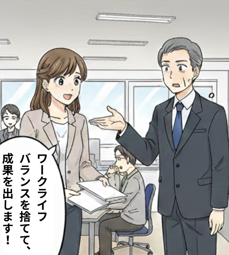 社会人3年目になり、私は仕事への意欲に燃えていました。ある日、上司から今後の展望を問われ、評価を上げたい一心で「ワークライフバランスを捨てて成果を出します!」と宣言してしまったのです。
