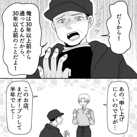 「30年以上通ってる」半年前にオープンしたレストランで働く主人公...【クレーマー】が来店して困惑!?