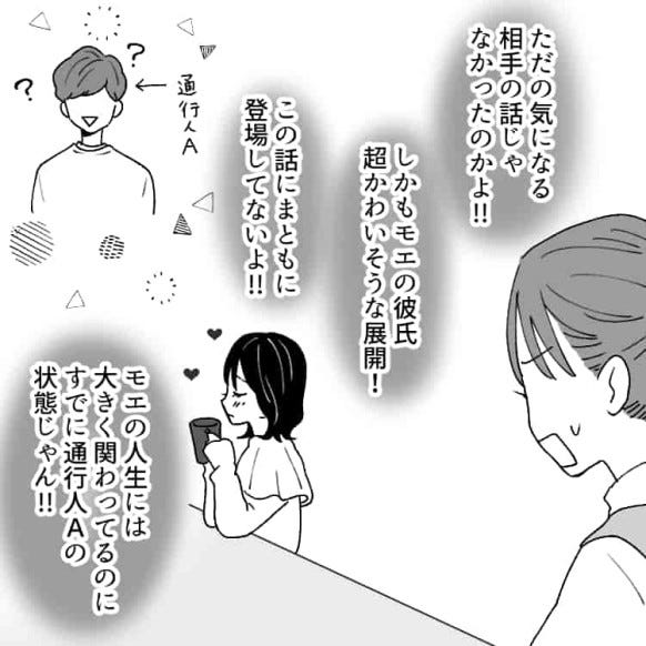 恋愛体質のモエの話にお手上げ状態の主人公。