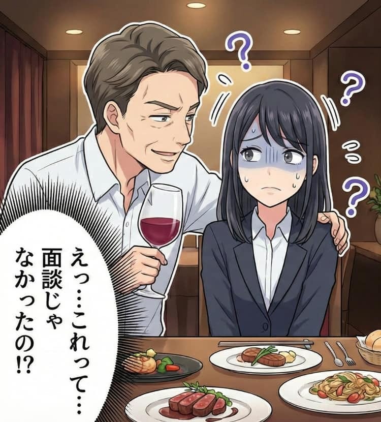 そんなある日、職場でもかなり上の立場にあたるおじさん上司から「今日、このあと少し時間あるかな?」と急に声をかけられました。普段あまり接点のない上司からの言葉に、私は仕事のフィードバックか面談なのだろうと完全に思い込んでしまったのです。