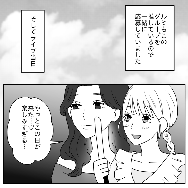 友だちのルミも同じグループを推しているため一緒にコンサートに行くことになったのですが、この後主人公に怒る想定外な出来事とは…?