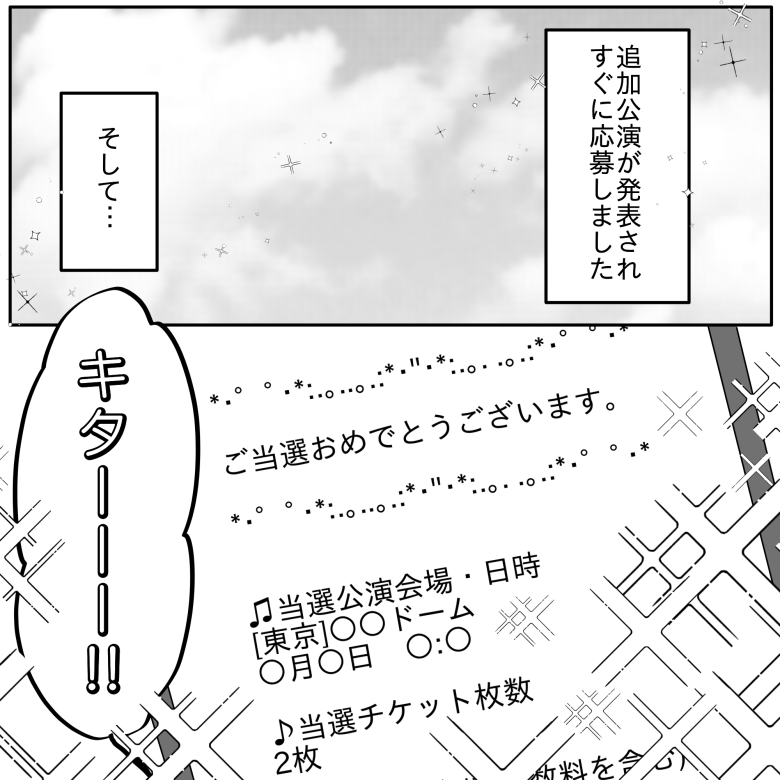 念願の推しのコンサートに行けることになり楽しみな主人公。
