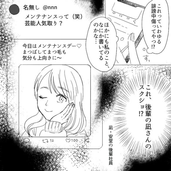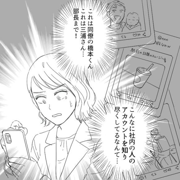 社内の人の悪口を書いているアカウントを発見した主人公。