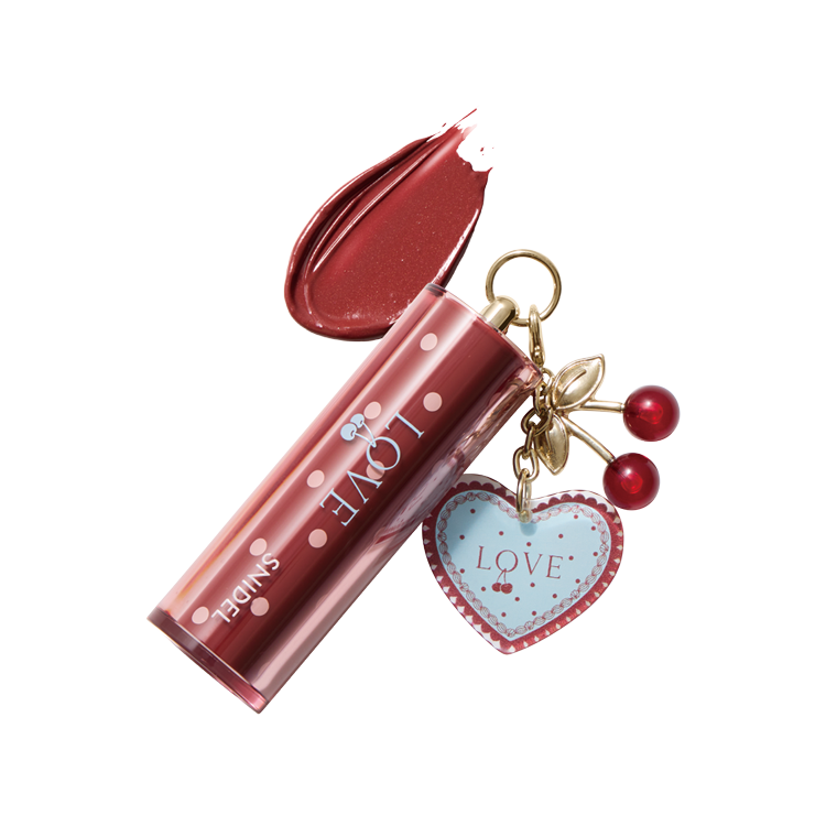 ローズブラウンのリップに揺れるチャームをつけて、塗り姿まで可愛く。