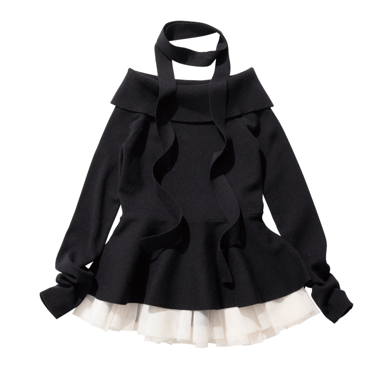 華やかなシルエットが主役級なペプラムニットはおでかけに役立つ1枚。