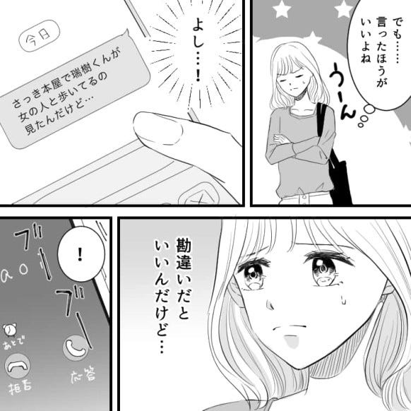 心配は当たり、彼氏の瑞樹は別の女性と浮気をしていました。