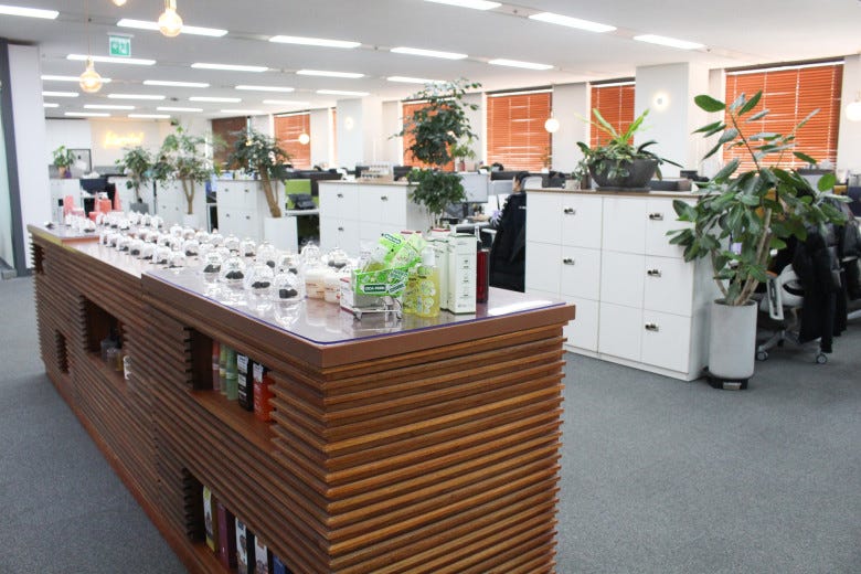 「KUNDALさんのオフィスで特に印象的だったのは、入口のスクリーンで世界地図とともに、各国の売上が可視化されていた点です。