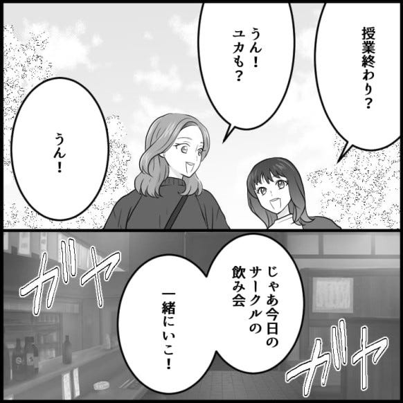 サークルの飲み会にマリナと参加する主人公。