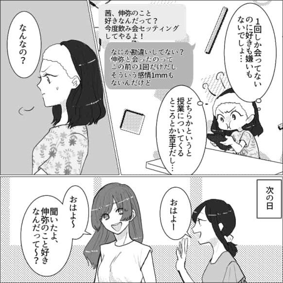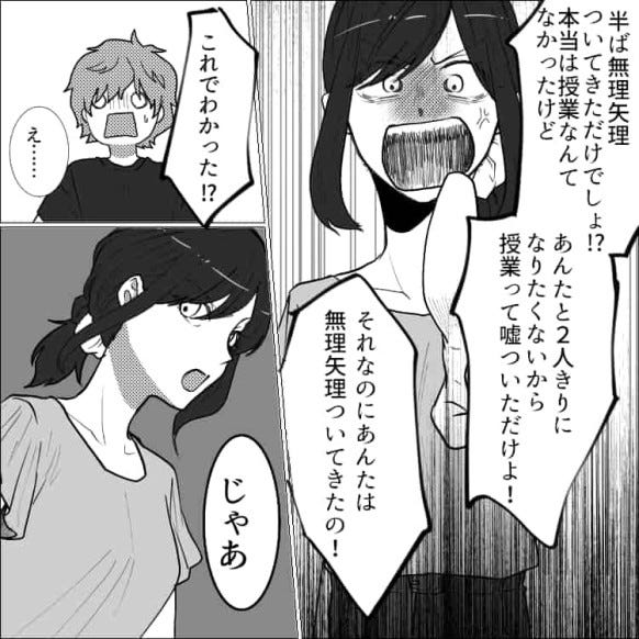 初対面の伸弥と2人きりになりたくない主人公は、授業があるからと嘘をつき、その場を離れようとします。