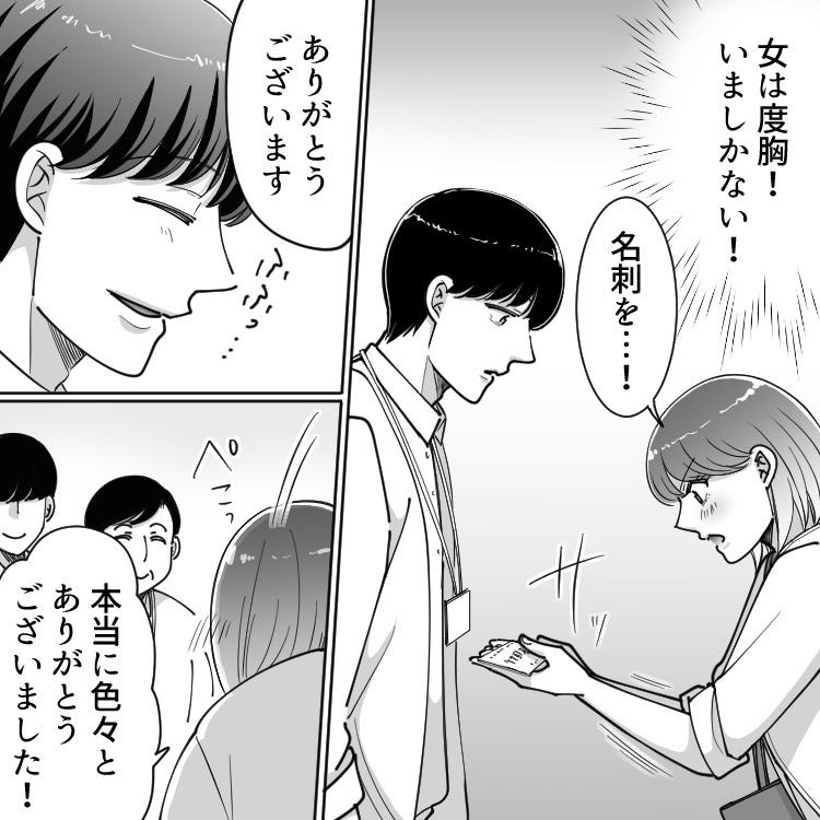 今回の出張を通して彼のことが気になっている主人公は、連絡先を渡すことに。