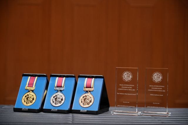 2023年のメダルと盾 一般審査員の投票によって審査が行われる、世界でも他に類を見ないユニークな音楽祭として、国際的に広く知られています。音楽の知識や経験は必要なく、音楽が好きな中学生以上の方なら誰でも応募できることも魅力。
