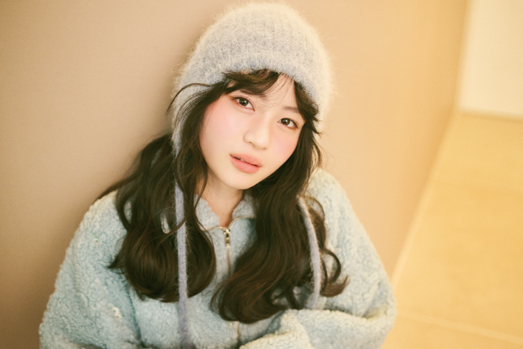 寒〜い外飲みでも風に負けない美髪でいたい♡ を叶えてくれる。巻きおろしのほっこりヘアは、前髪をセンター分けのリバース巻きにして、ちょこっと動きのある抜け感を仕込んで。