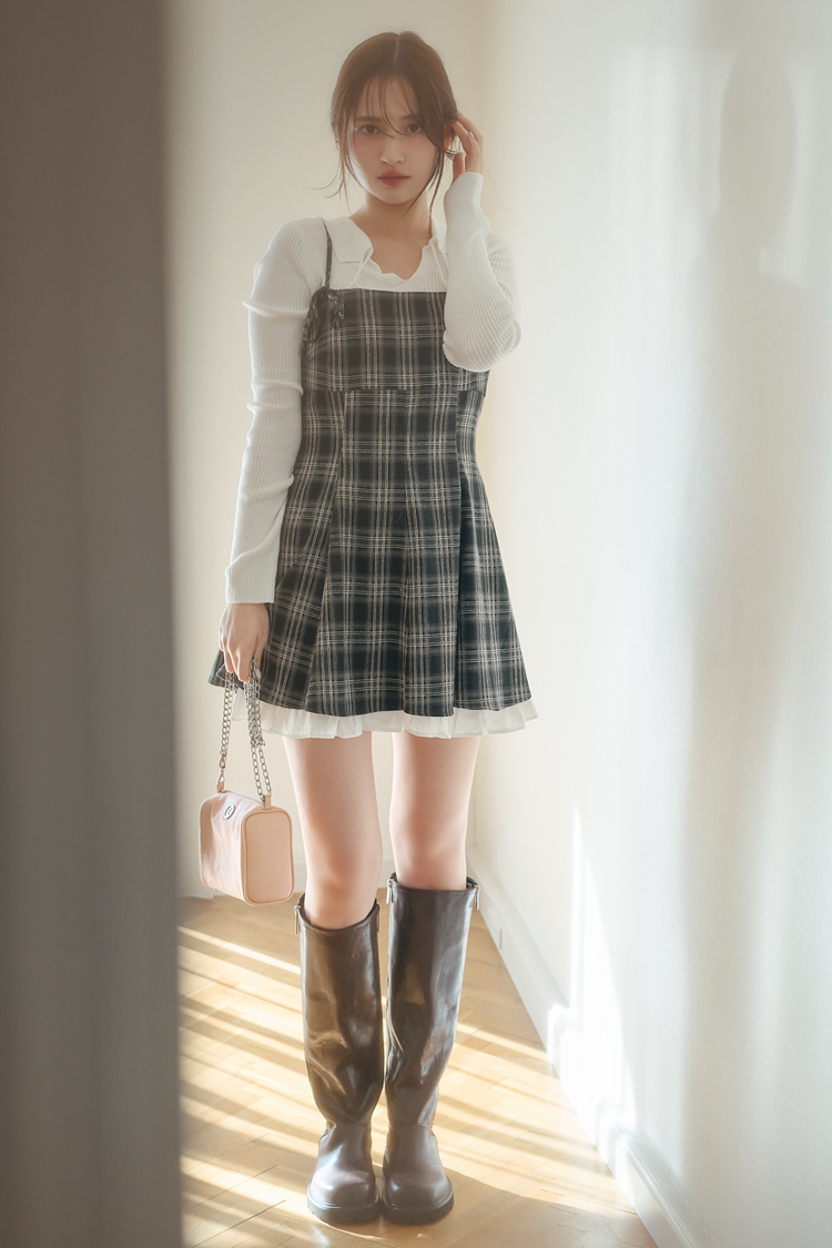 韓国っぽワンピで好印象♡ グループ飲みで映える「チェック柄ワンピコーデ」
