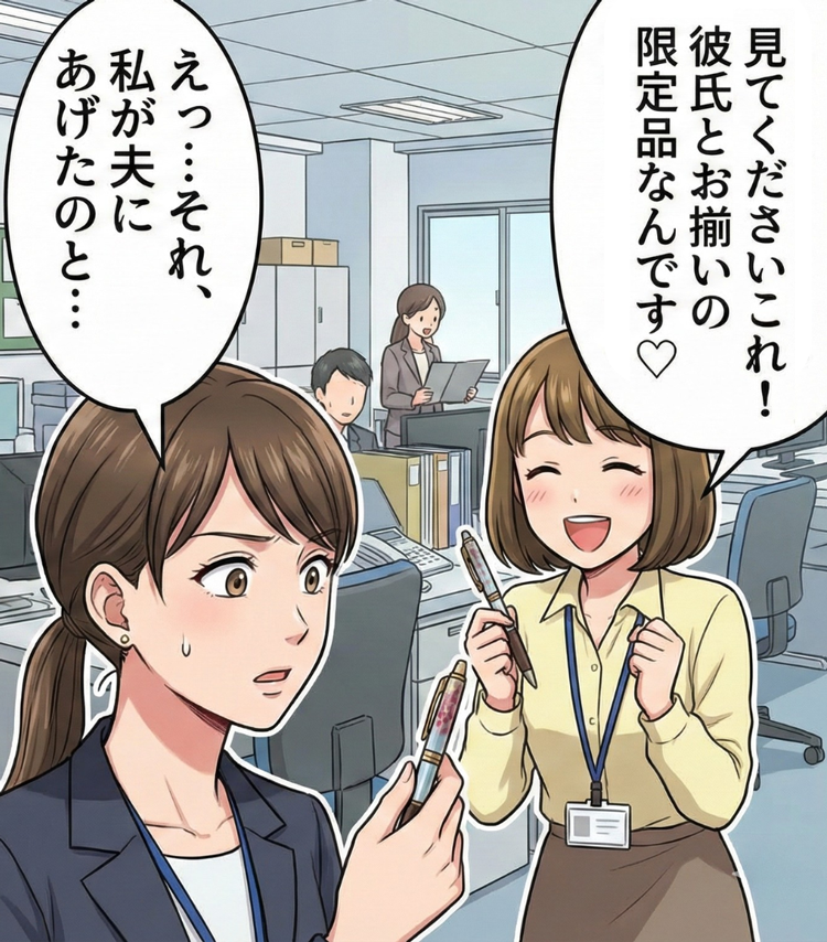そんなある日、部署の後輩の女性社員が「彼氏とお揃いなんです」とうれしそうに、ある限定品のボールペンを見せびらかしてきました。