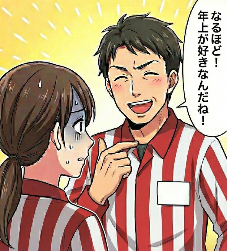 その「オトナな人」という言葉が、どうやら先輩のなかで大きな勘違いを生んでしまったようで、急にうれしそうな表情を浮かべ、「なるほどね、やっぱり年上が好きなんだね!」と言い始めたのです。