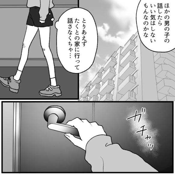 ある日の帰り道、主人公がほかの男子の話を出したことがきっかけで、言いあいになります。