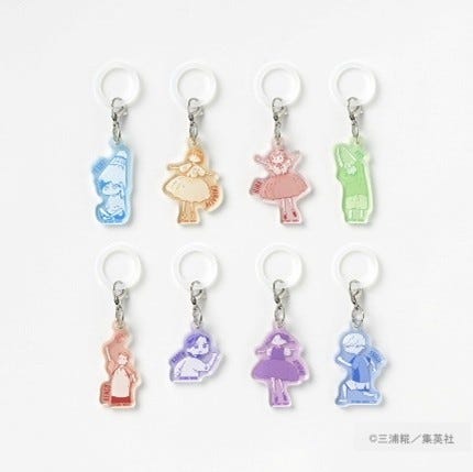 本展のために描き下ろされた朗らかな笑顔の大喜と千夏を飾って楽しめるアクリルスタンドや、登場キャラクターの表情を楽しめるステッカーセットなど15商品以上がラインナップしています。