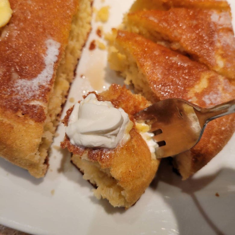 このようなパンケーキは食べたことなかったので、今後は新種のパンケーキも食わず嫌いせずに挑戦したいと思います。