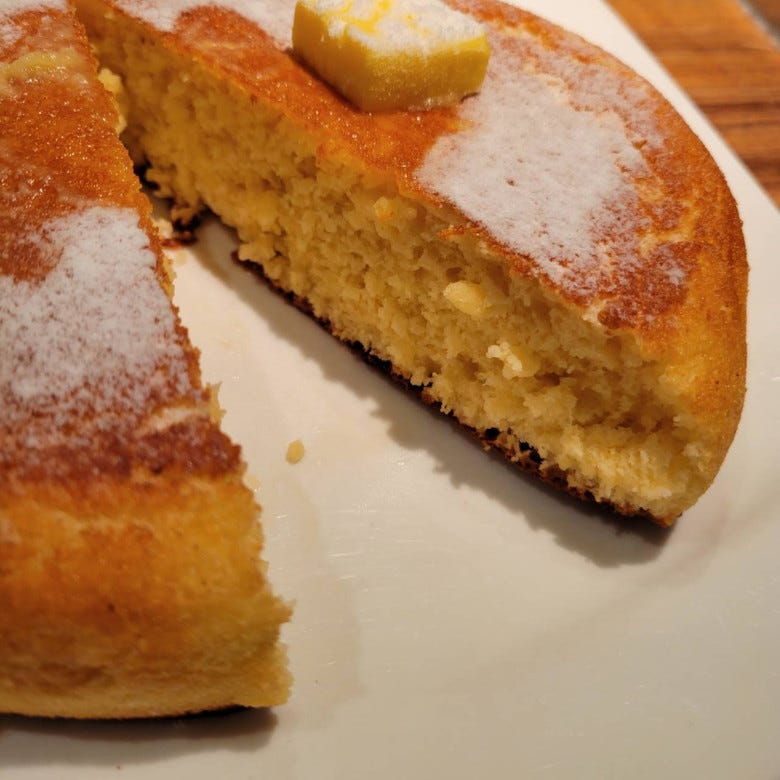 私がノスタルジアを感じるパンケーキとは、表面がこんがり焼けて、四角いバターが乗っかった、生地の弾力がありそうなパンケーキです。