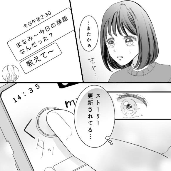 課題のときだけ連絡をしてくる友だちに、モヤモヤしている主人公。