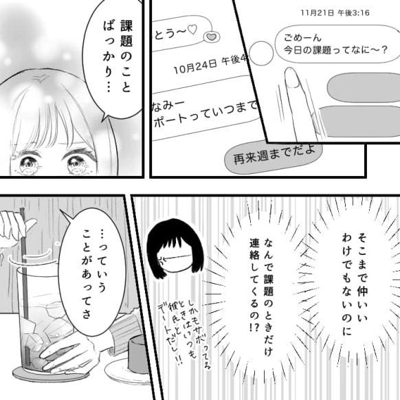 「今日の課題なんだった?」私を都合よく使ってくる友だち...痺れを切らした主人公は【まさかの発言】を!?