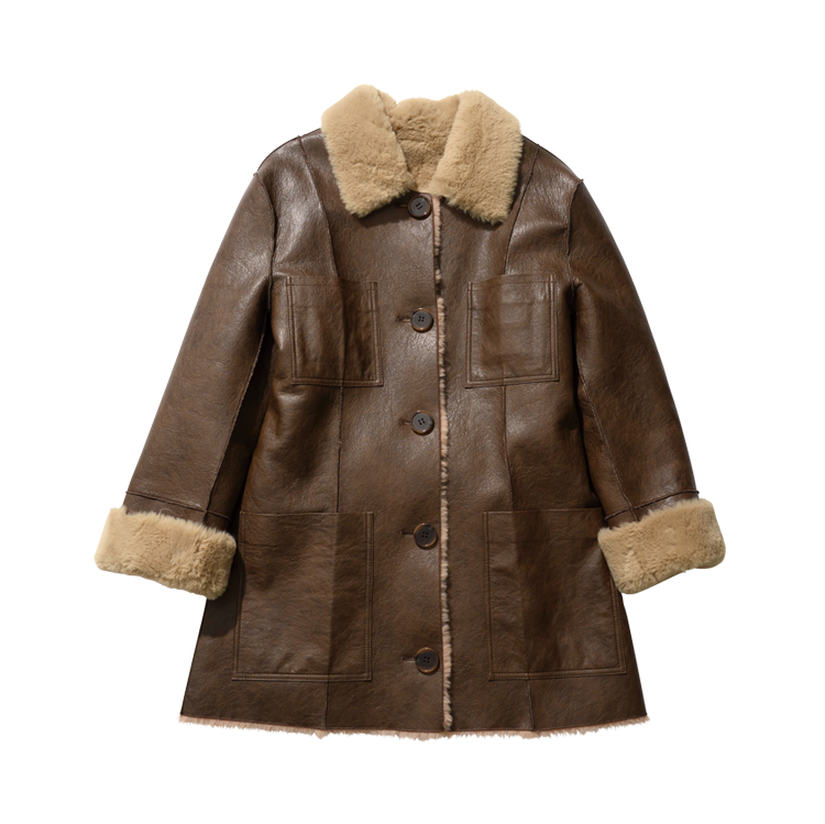 いつものカジュアルにマッチするラテカラーのファーコートを返せばシックなレザーコートに変身。甘いだけじゃない私を演出♡