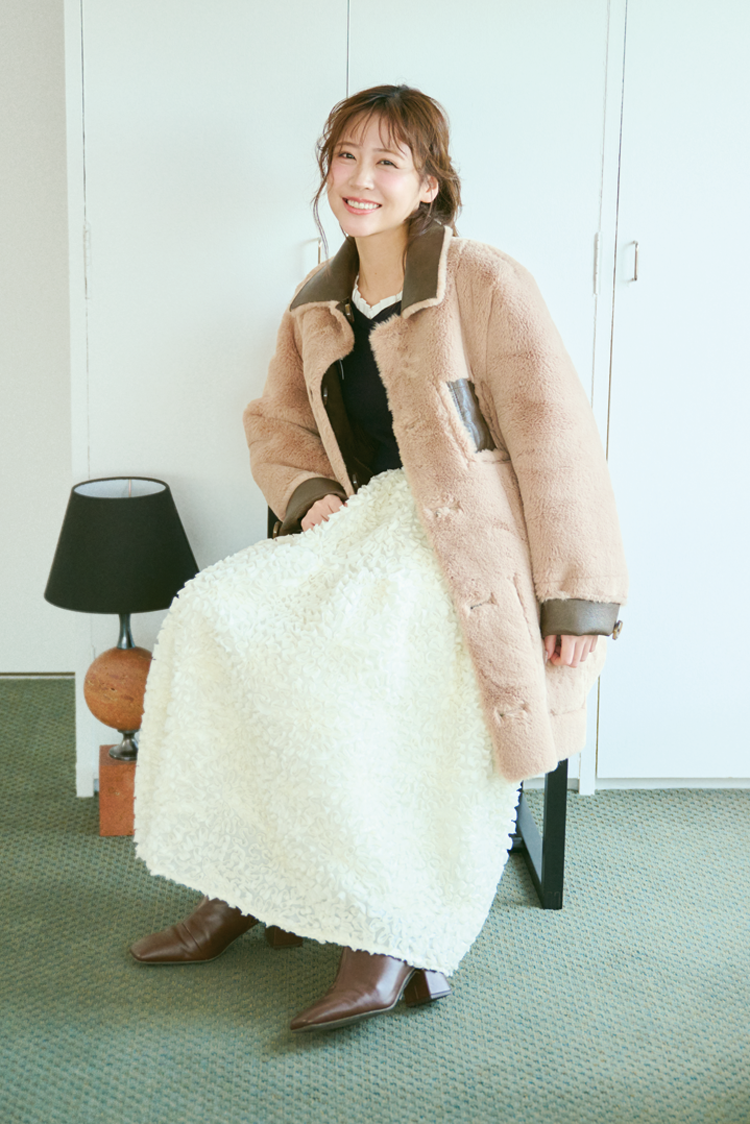 【Day】ぬいぐるみライクなコートに負けないフリルスカートで甘いムードを満喫