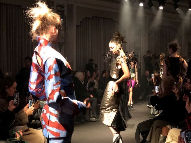 ――私たちは見れなかったけれど、一番話題のショーで、さんざん映像や写真が紹介されていたので見た気分になった。繊研新聞の速報でも大きく取り上げた。
