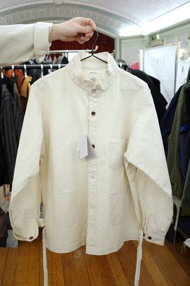 メンズシャツを中心とするOEM(相手先ブランドによる生産)のワイヤード(岡山)は、オリジナルブランド「ソウバス」を出した。ブランド主力の第一ボタンに天草ボタンを付けたキャンバス地のウィングカラーシャツ(2万7500円)や、26~27年秋冬物からアルパカ100%のコーチジャケット(5万3900)、ウール100%のストライプ柄のコーチジャケット(4万9500円)などを揃えた。来年にブランド創立10周年を迎える。昨年からレディスの企画も始めており、綿・麻のシャツなどがある。国内外のセレクトショップに卸している。卸先は、フランスやドイツなど海外の方が多い。