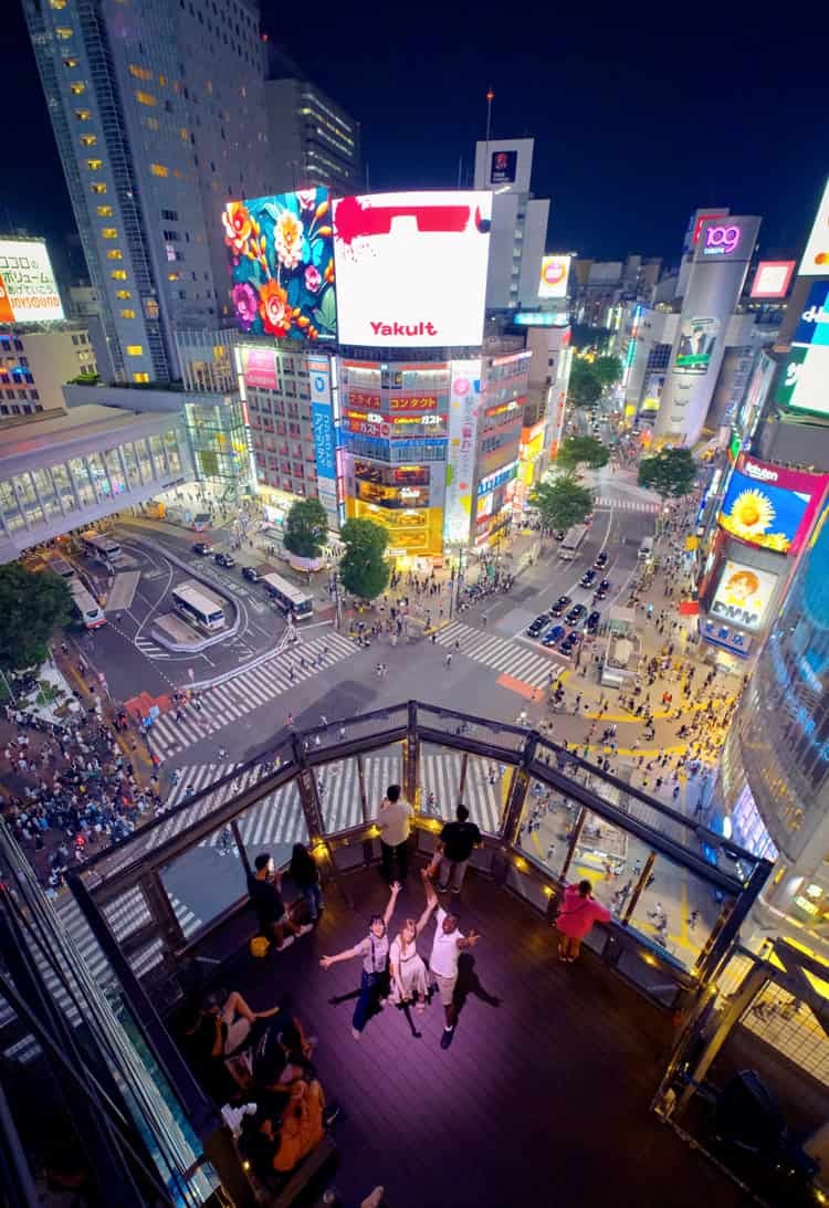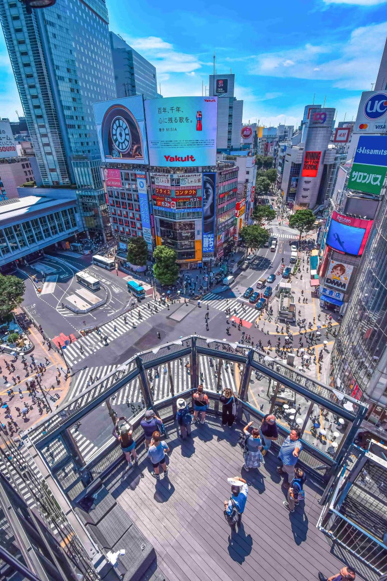 渋谷スクランブル交差点を眼下に渋谷の風景を見ることができる室内ラウンジ。毎月開催される、日本文化を体験できる