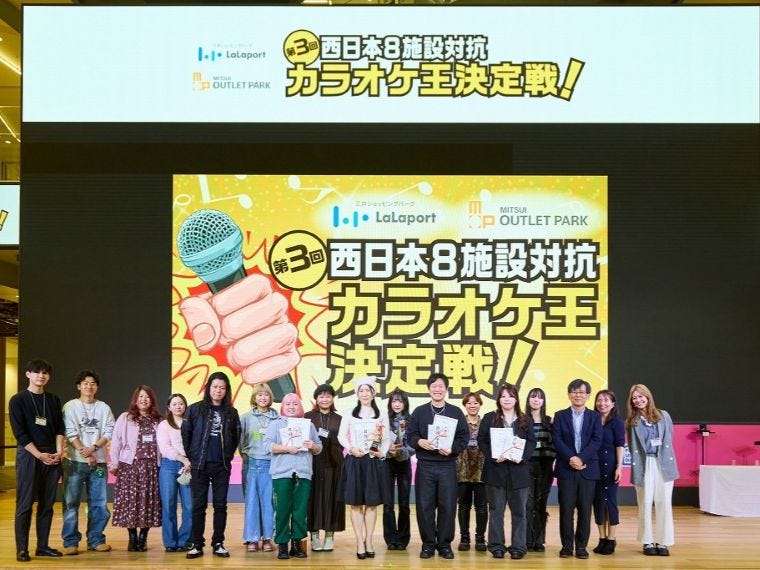 三井不動産商業マネジメントは2月下旬、西日本8施設の従業員による「カラオケ王決定戦」をららぽーと堺の1階ファンスタクロススタジアムで開催した。ES(従業員満足)の向上、施設内チームビルディング、施設間交流が狙いで、今回で3回目。