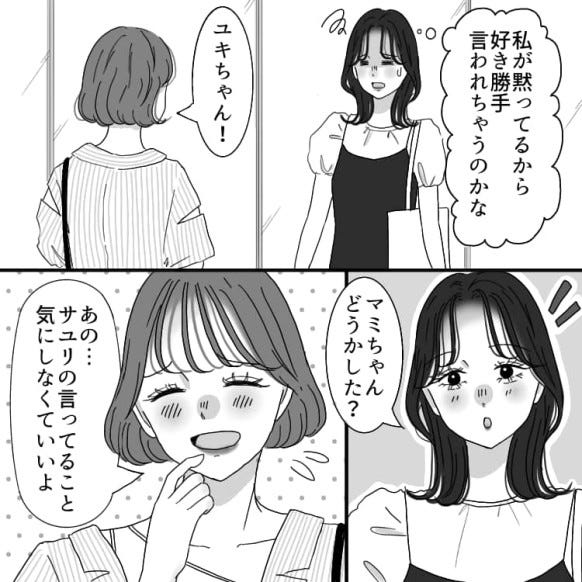 サユリが何度もユキを下げるような発言をし、友だちが作りづらい状況になり、モヤモヤしているようです。