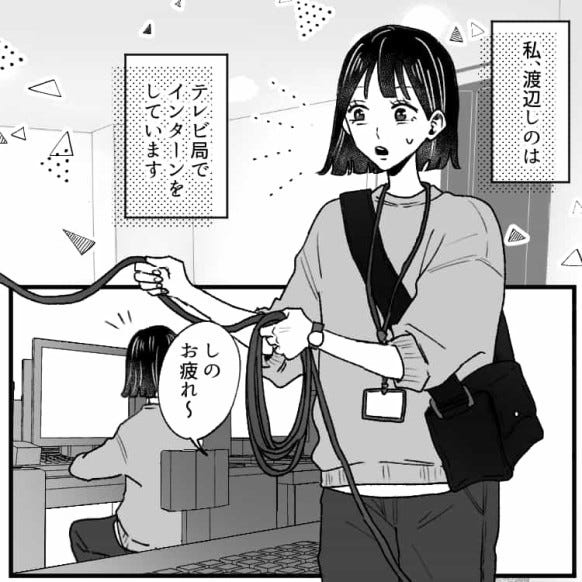 主人公・しのは、テレビ局でインターンをしています。
