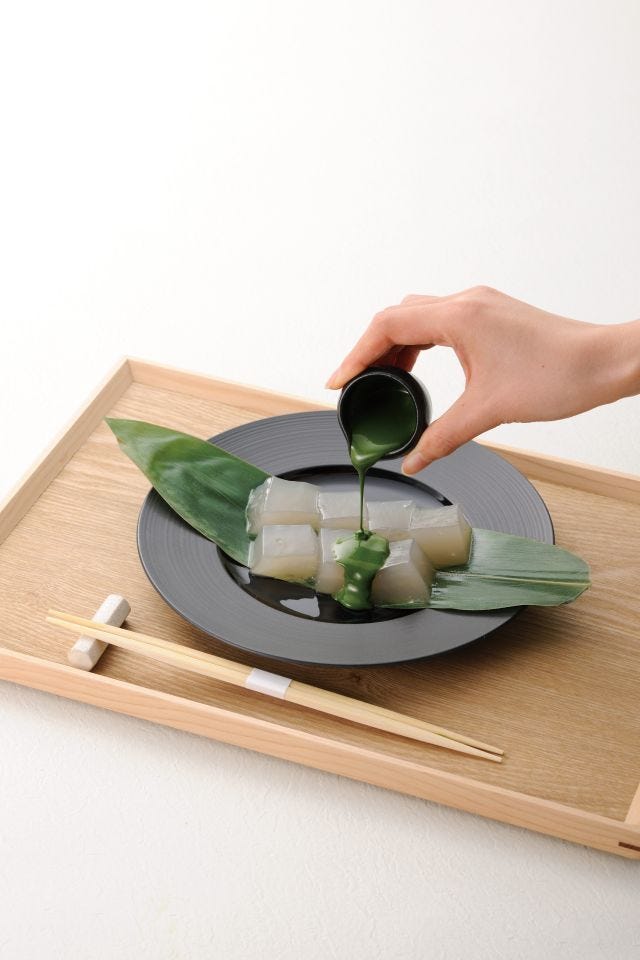 「特選宇治抹茶チョコレートわらび餅」(900円) カフェは1階・2階合わせて全56席あり、散策の合い間のひと休みにぴったり。