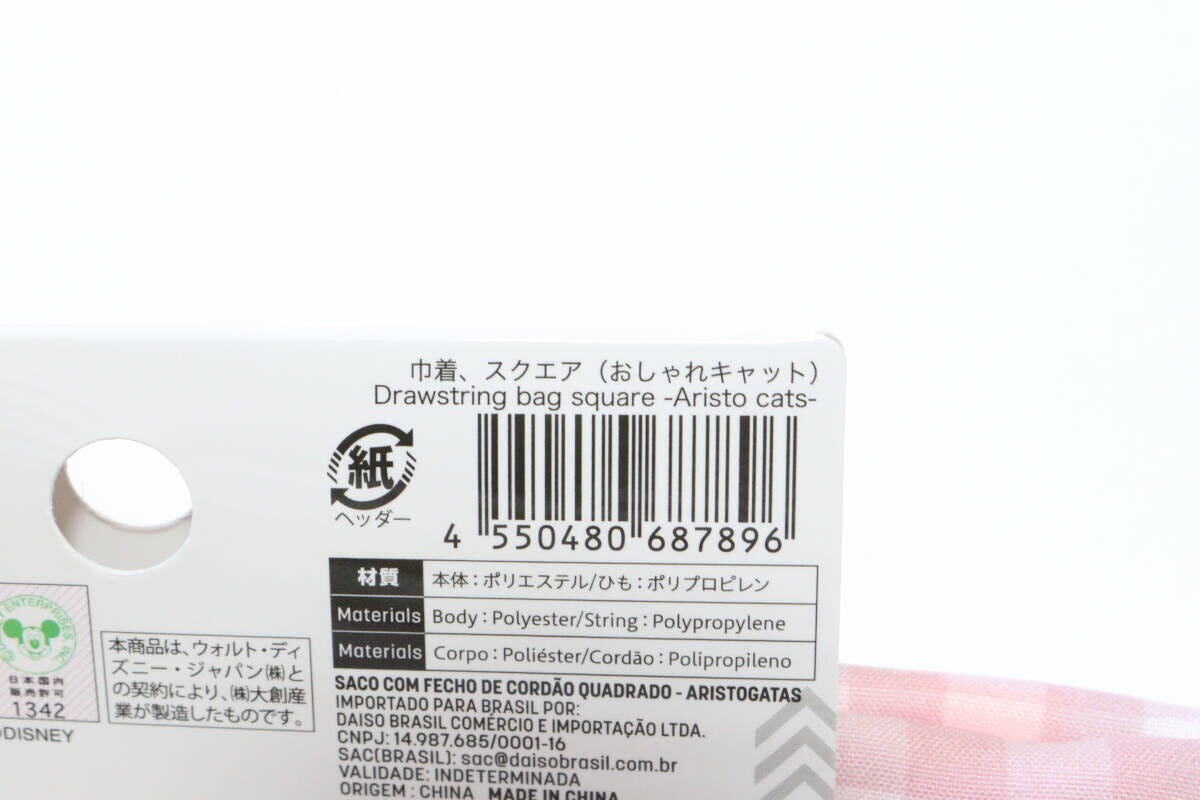 今回はダイソーの『巾着、スクエア(おしゃれキャット)』をご紹介しました。