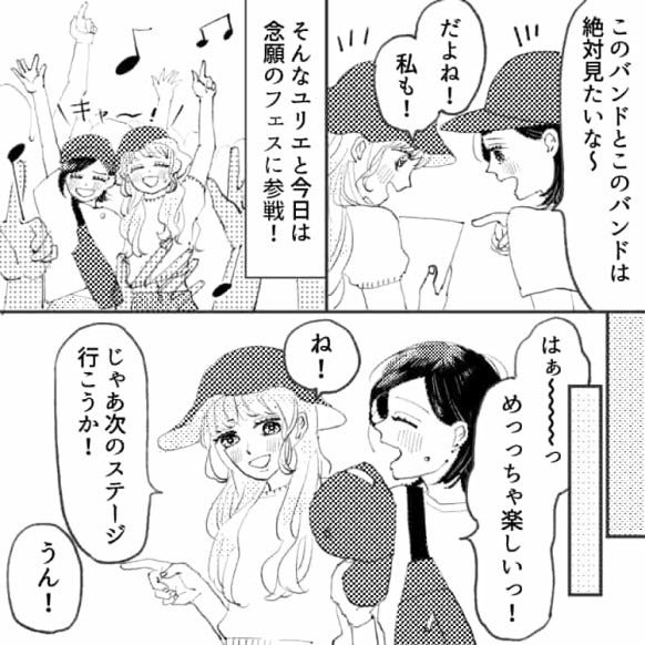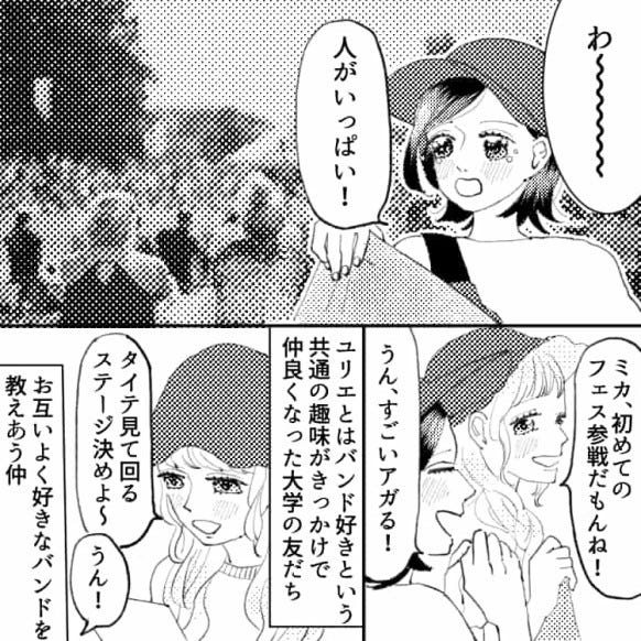 主人公は共通の趣味を持つユリエという友だちと、音楽フェスへ行くことになりました。