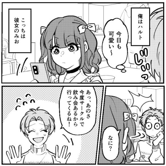 ある日主人公は、サークルの飲み会に行ってくると伝えるのですが……?