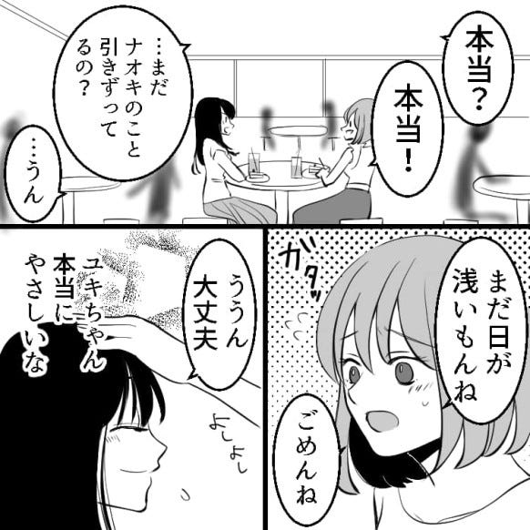 それを知ったユキちゃんに「いつでも相談に乗るからね」と言われ、2人の間になにもないと主人公は安心します。
