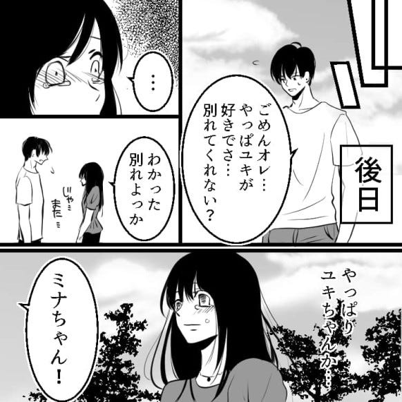 しかし主人公が去ったあと、ミナちゃんの表情が一変!「相談に乗るから」と言っていたミナちゃんも、もしかしてナオキくんのことを……?
