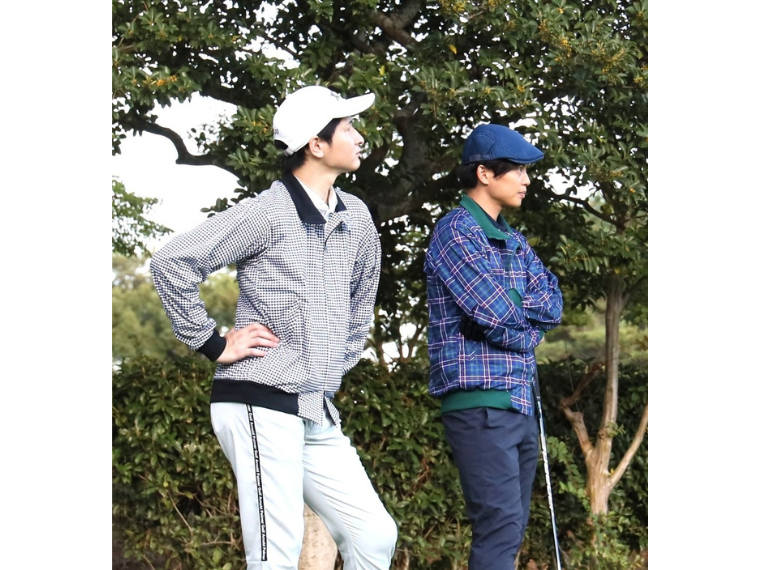 商品はハリントンジャケットをデザインベースにした150周年記念チェック柄とハウンドトゥース柄の2モデル。前身頃はセットインスリーブでクラシック感を出した。一方で後ろ身頃はラグランスリーブとして袖下から脇線の距離を長く取り、コンパクトな前身頃とゆとりのある後身頃、さらに背中のベンチレーションで肩周りの可動域を広げるとともに、スイング時やパッティング時のストレスを軽減する設計にした。素材は同社が学校向け体育着にも採用する「ピステックス001」。軽量ストレッチ性のほか防風、撥水(はっすい)、制電制、ノイズレス機能を持たせた。岡山県立大学情報工学部人間情報工学科、人間動態学研究室でドライバーのスイングスピードやパター動作時の使用感などを検証、向上性を実証した。